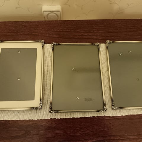 Koristeellinen valokuvakehys, neljä kappaletta . Kehykset sisältävät takatuet pöytäkäyttöön. Koko 15 x 20 cm. Hinta 3 euroa kpl. Voin lähettää. Mmm.