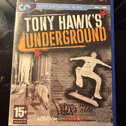 Tony Hawk's Underground on Playstation 2 -pelikonsolille tarkoitettu skeittausaiheinen videopeli. Peli sisältää skeittauksen ja katuympäristön elementtejä. Levyssä pieniä käytön jälkiä,ei pitäisi vaikuttaa pelaamiseen.