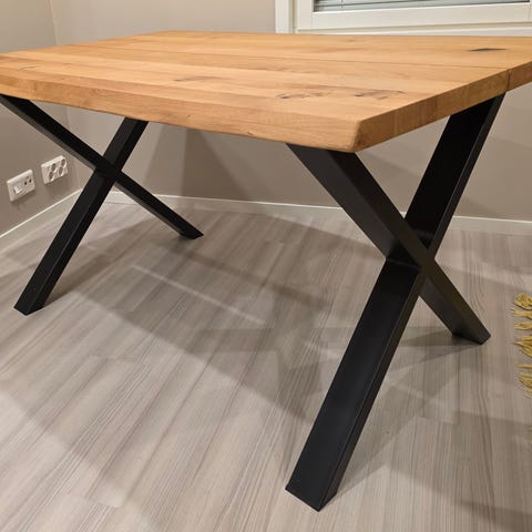 Jämäkkä lankkupöytä, joka ostettu Vekestä ja 4kpl ikean ehjät tuolit.