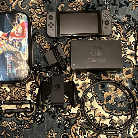 Includes dock, Joy-Con controllers, controller grip, charger, all necessary cables, and carrying case.