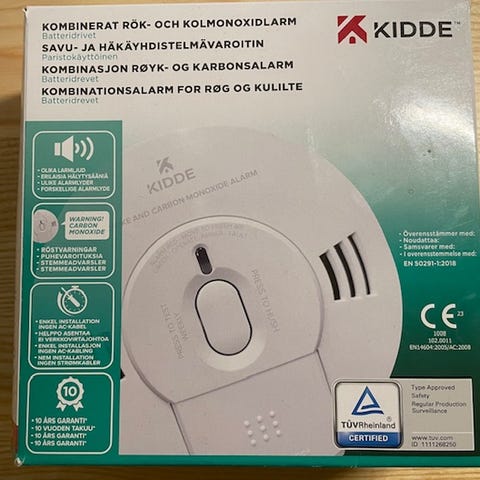 Kidde Fynnetics palovaroitin, 230V kytkettävä, 10v akkuvarmistus, ohut Slick malli, mallinumero 2SFWR