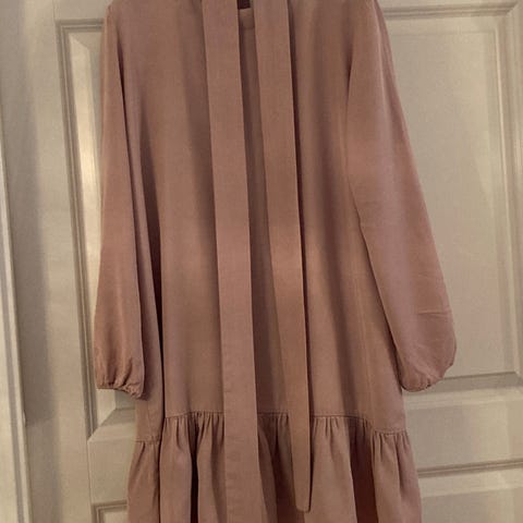 Hyväkuntoinen/siisti Gauhar mekko. Koko S, monikäyttöinen musta väri, materiaali satiinimainen tencel (kuva) Mekon hihansuissa kuminauha, helmassa 20cm rimpsu. Vyö mukana.