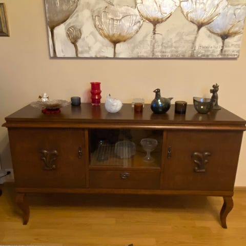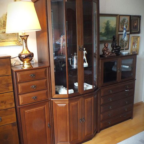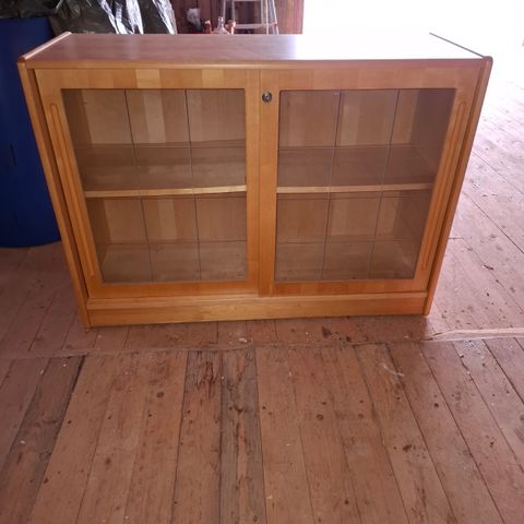 Lasivitriini, kauniit lasiovet. Kuvan mukainen umpipuuta. Maalattu. Valmistettu kokonaisena, ei pysty purkaan