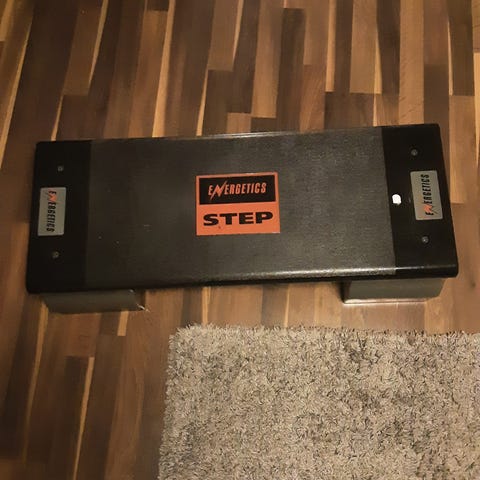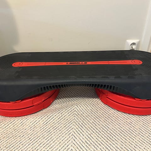 Les Mills step-lauta mustana ja oranssina. Step-lauta soveltuu erilaisiin kuntoiluharjoituksiin ja aerobiciin.