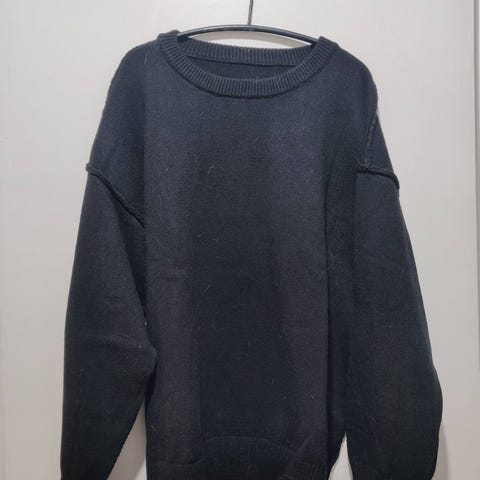 Myydään kerran käytetty, paksu, oversized neulepaita, jossa saumat neulottu ulospäin.