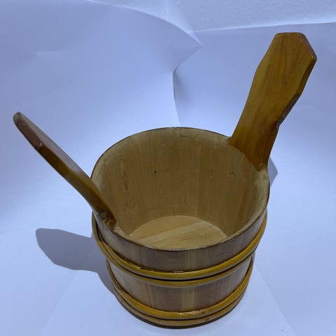 Vanha puukiulu, ollut meillä koristeena. Kuvassa lämpömittari antamassa koko-osviittaa.