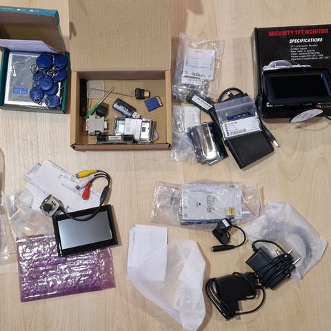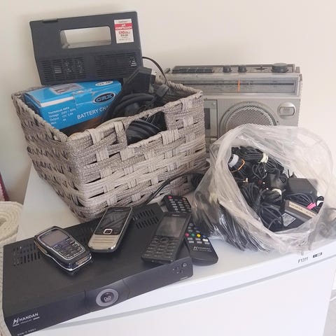 Myydään pois tarpeettomat:: Scartjohtoja / jakaja. Muistikortin lukijoita. Akkulaturi. 12 V 4 A. ( Kunnosta ei tietoa ). kompressori.( Ilmajohto uusissa ) . Kännykkä telineitä. Yövalo. Kaiutinsuojat uudet. Johto sarjoja videohin / DVD laitteisiin ym...koko kasa 15 euroa.