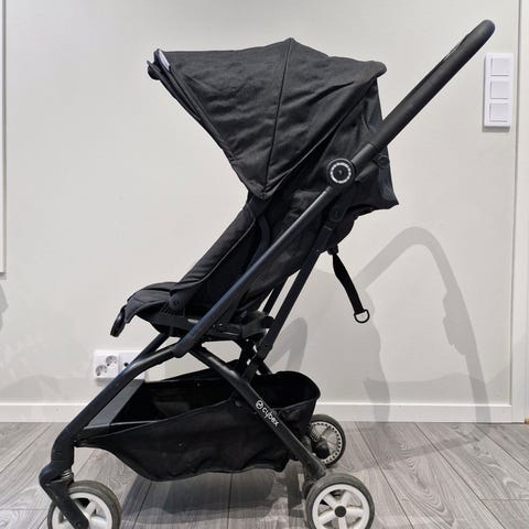 Cybex Eezy S Twist +2 matkarattaat, beige väri. Rattaissa on kääntyvä istuin, säädettävä kuomu ja kevyt runko. Rungossa käytönjälkiä.