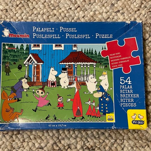 Myydään kaksi 40 palan siistikuntoista palapeliä. Muumi ja Myyrä.