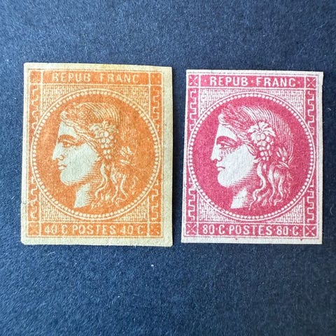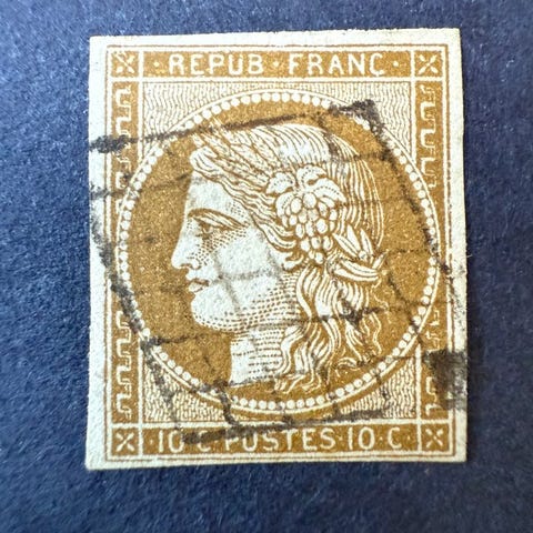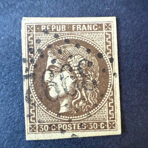 Tarjoamme Yvert 5 "Cérès 40c orange" -postimerkkejä leimattuina loputtomalla ruudukolla.