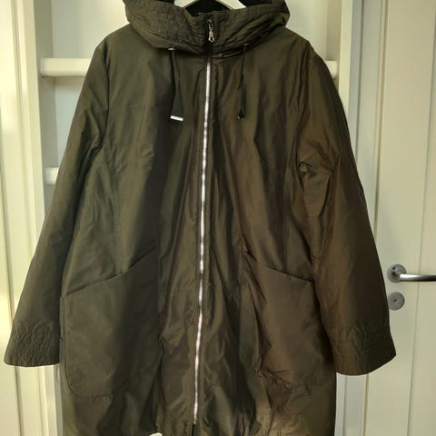 Koko 38. Materiaali on 61 % polyamidia ja 39 % polyesteriä. Takissa on vetoketjulla irrotettava huppu, jonka reunassa aito turkis, joka on myös vetoketjulla irrotettava. Edessä vetoketju kiinnitys sekä helmassa neppari. Takin koko ihan reilu 38.
