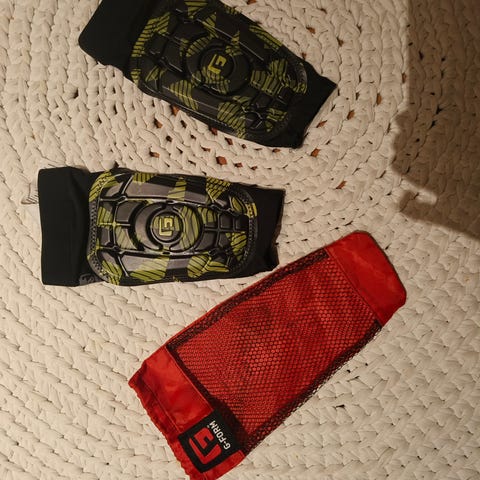 Hyväkuntoiset iskusta kovettuvat G-Form Pro S Vento säärisuojat.