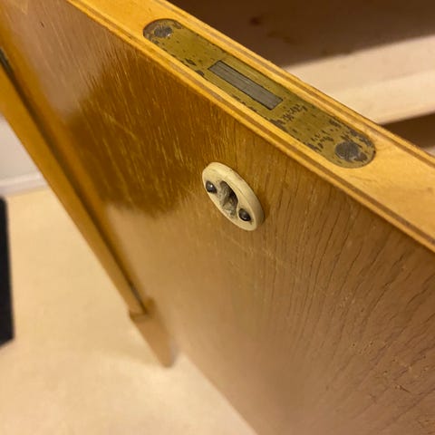 Myydään antiikkinen ( tammi??) Senkki. Kannessa sanomista/kulumaa.