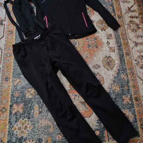 Tätä hiihtoasua käytetty vain 2 kertaa. On siis uutta vastaavassa kunnossa. Koko 36 ja mitat seuraavasti: kainalosta kainaloon 55cm, niskasta takahelmaan 70cm, sisähaarasta lahkeeseen 77cm. Kuminauha vyötärö ja pingotettuna max.ympärys 100cm. ja muutoin n. 70cm.