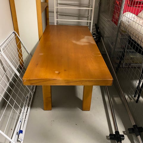 Annetaan ruskea sohvapöytä / olohuoneen pöytä. Pöydässä kulumaa, joka näkyy kuvissa.