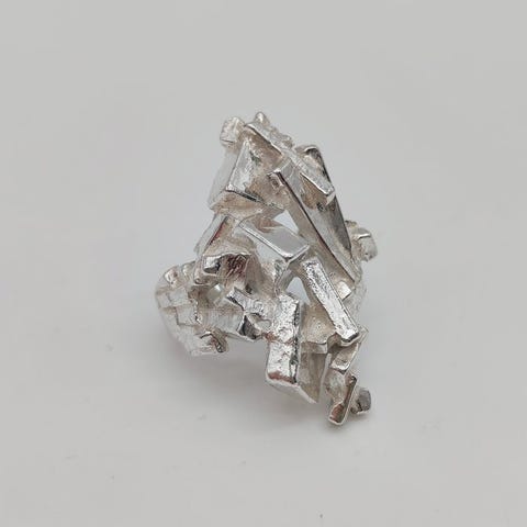 Menno Meijeriltä suunnittelema vintage modernistinen sormus, hopeasta.