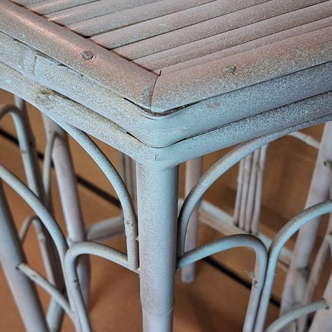 Hyväkuntoinen Plantagenin kukkapöytä. Pinnassa huomaamattomia naarmuja ja jalassa pieni kolhu (nähä huomiootu hinnassa).