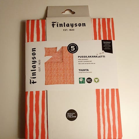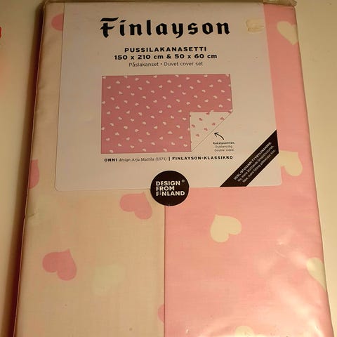 Myydään uusi puuvillasatiininen, Finlaysonin pussilakanasetti leveään peittoon. Sis. kaksi tyynyliinaa.