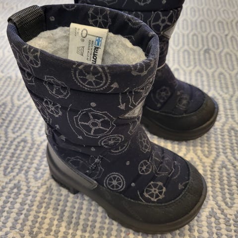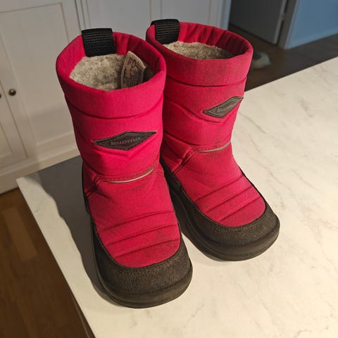 Hyväkuntoiset mustat Kuomat koko 24. Pohjissa hyvin vähäistä kulumaa erottuu, on ollut käytössä yhden talven ajan. Vielä tosi lämpimät! Koirakoti, ei homeita tai muita hajuja.