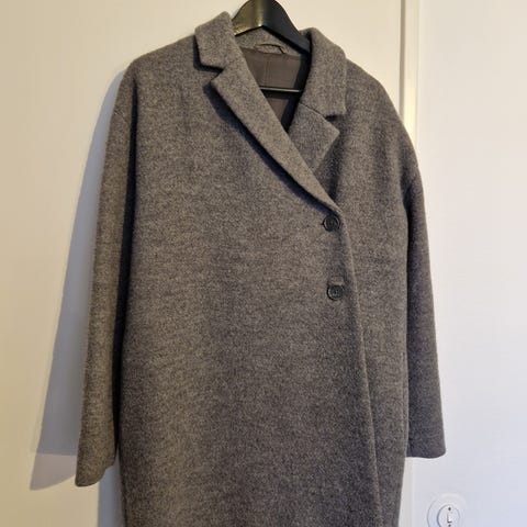 Cos harmaa villakangastakki, ehjä, mutta pientä nukkaa takin pinnassa, näkyy kuvissa. Koko melko väljä, sopii hyvin 36-38 kokoiselle.