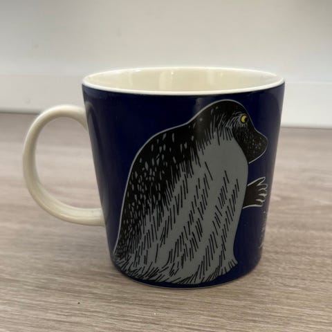 Arabian Mörkö- Muumimuki, jossa sininen taustaväri ja Muumi-aiheinen kuvitus.