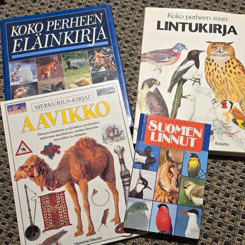 Kuvassa näkyvät eläinkirjat pakettina