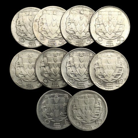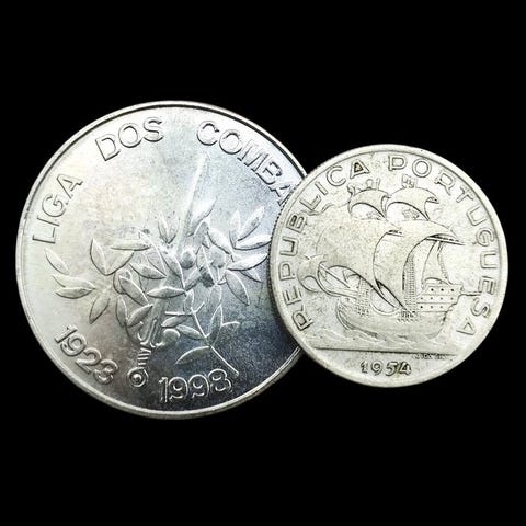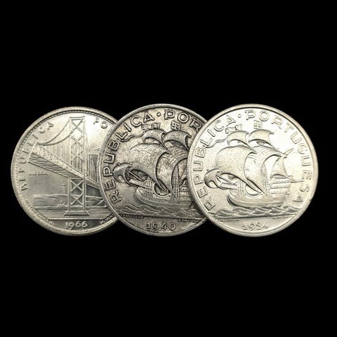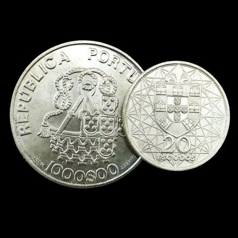 Hopea 10 Escudos (Ouriquen taistelu) kolikko.