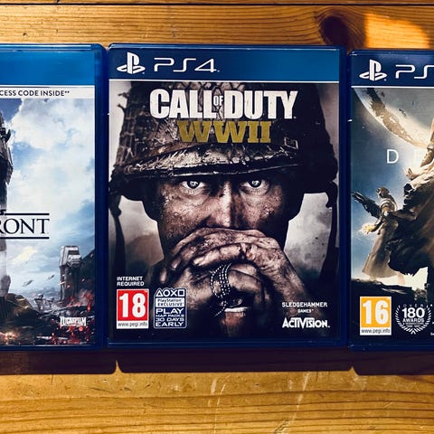 Playstation 4 pelit sisältäen Witcher 3, Dark Souls III, Gran Turismo Sport, Horizon Zero Dawn ja Uncharted 4. Pelit ovat fyysisinä levyinä ja sopivat Playstation 4 -pelikonsolille. Kaikki on uusia postitus ostajalle