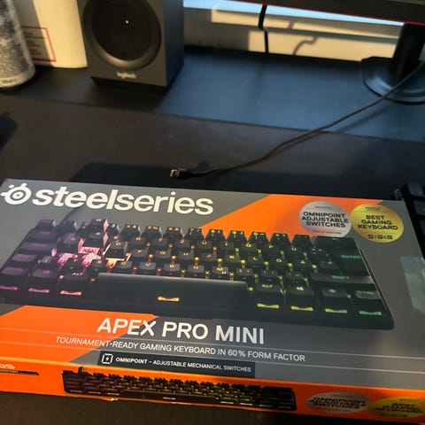 SteelSeries Apex Pro TKL näppäimistö. Kompakti malli ilman numeronäppäimistöä (TKL). Yksi parhaimidsta näppäimistöistä mitä rahalla saa. Näppäimistö ollu käytös ehkä 3-4 kuukautta omistuksessa mut ei oikeen tullu pelattuu ja tämä näppäimistö suaraan sanottuna kallis seisokseen vaan pöydäl. Kuitti löytyy. Myös kaikki mitä oli alkuperäisessä boxissa tulee mukan