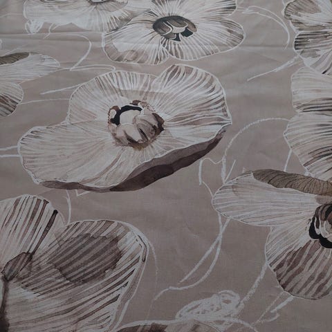 Pöytäliina on käyttämätön ja pakkauksessaan. Kaunis lehtikuvio pellavanharmaassa värissä.