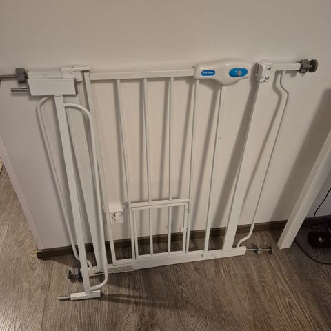 Tarpeettomaksi jäänyt eläinportti. Ei ole speksattu virallisesti lapsia varten, mutta pitää konttausikäisen poissa keittiöstä.
