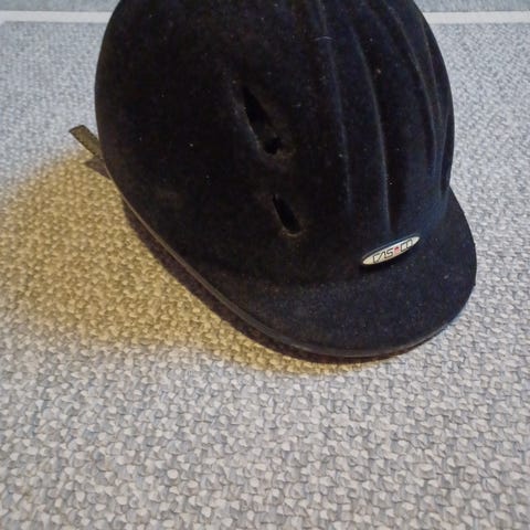 Yhdellä ratsaatajalla käytössä ollut ratsastuskypärä, koko XXS (päänympärys säädettävissä 51-55 cm), väri musta. Kypärä on varustettu säädettävällä hihnalla ja sisäpehmusteilla.