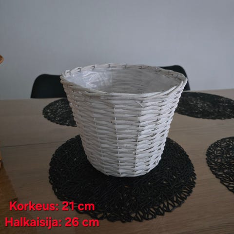 Myydään siisti ja hyväkuntoinen punottu kori. Sopii hyvin säilytykseen, sisustukseen tai kukkaruukunsuojaksi. Tukeva ja kevyt.