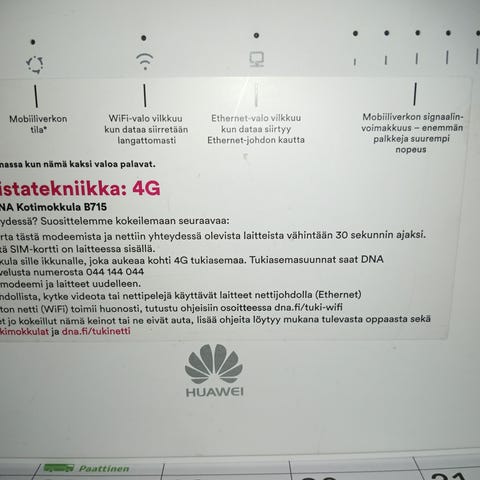 Huawei mokkula. Ollut Elisan liittymässä läppäriin. Nyt ylimääräinen. Otettu pois käytöstä 5 kk sitten. N. 6v vanha.