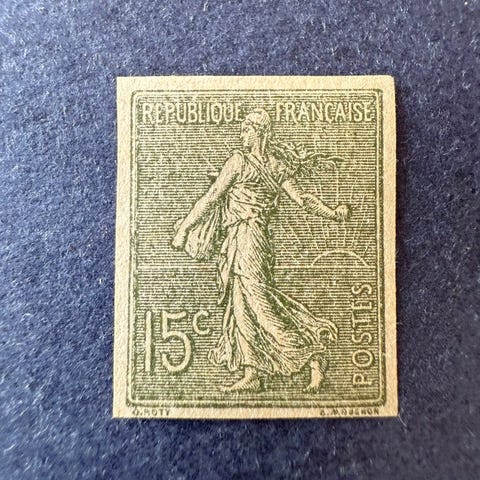 Tarjoamme Yvert 130g "Semeuse 15c vihreä" reunattomana uutena ** ilman kiinnityksiä.