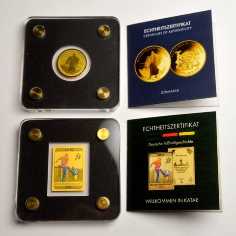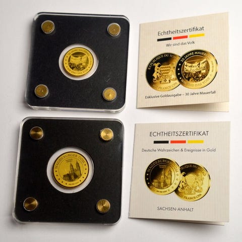 Vastuuvapauslauseke: Tämä erä sisältää pieniä kultakolikko(t) tai -mitali(t), jotka on valmistettu erittäin ohuesta kullasta ja kiinnitetty akryyliin vaurioiden estämiseksi. Jos sinulla on kysyttävää, ota yhteyttä meihin.