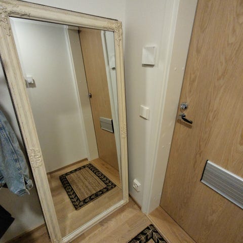 Jysk hopea peili, jossa on koristeellinen kehys. Koko: 72x162 cm.