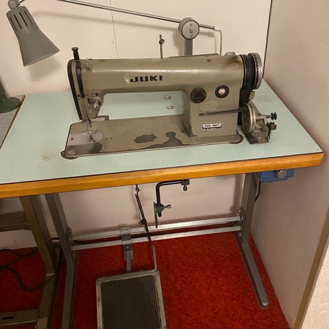 Yamato DCZ-361.C teollinen ompelukone, varustettu turvavarsilla ja jalustalla. Soveltuu korkeanopeuksiseen ompeluun teollisissa käyttöympäristöissä.