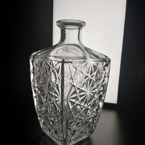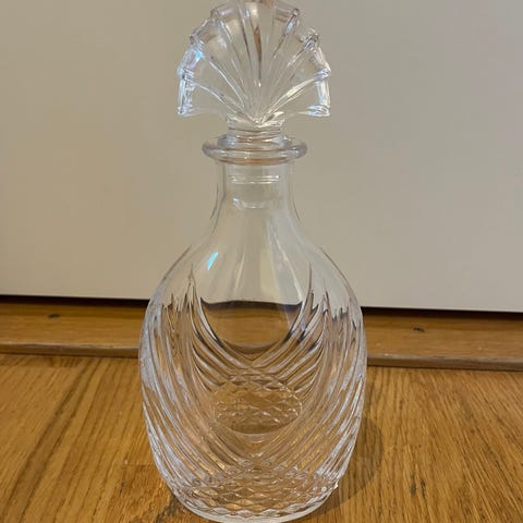 Dekantteri ja 6 viinilasia, viinirypäle hionta, meripihkan väriset