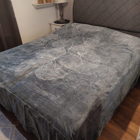 Myydään tumman harmaa päiväpeitto vetoketjulla. Patja asetellaan päiväpeiton sisälle. Vetokejulla peitto kiinni ja Patja ja petivaatteet jäävät päiväpeiton sisälle. Näin peitto ja tyyny pysyy taatusti paikallaan koko päivän ja sänky näyttää siistiltä. Sopii patjalle jonka koko 80x11x165. Pientä kulumaa vetokeljun vieressä , kts kuva. Hajusteeton ja eläimetön koti