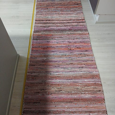 Näitä on kaksi samankokoista valkeaa perinteisesti kudottua räsymattoa. Hinta on yhteensä 40€ tai 25€ kappale.