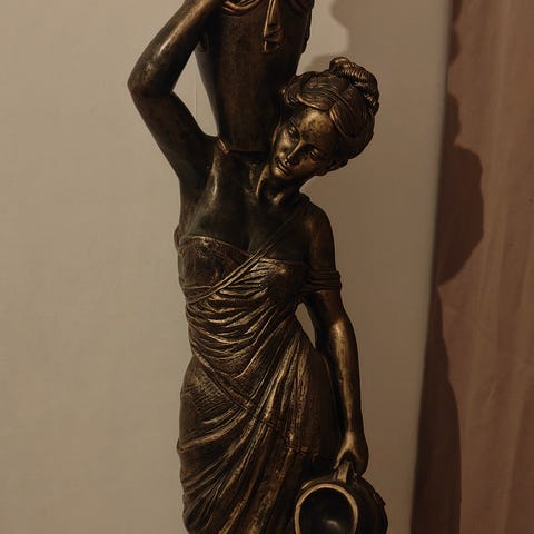 vanha kaunis patsasvalaisin, lattia tai pöytä, iso tiffanykupu läpimitta 49 cm, koko korkeus 90 cm, erinomaisessa kunnossa, hinta 195 euroa.