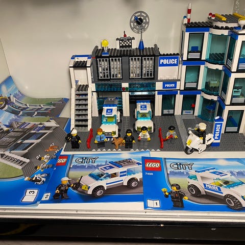 LEGO City Poliiasema rakennussarja sisältää poliisiaseman rakennuksen, poliisiautoja, helikopterin ja useita poliisihahmoja.