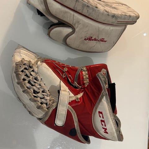 Ihan hyväkuntoinen CCM Extreme Flex II Pro Goal Blocker- Sr Pro-tason seniori koon kilpi muutaman vuoden takaa. Kämmenosa ehjä.