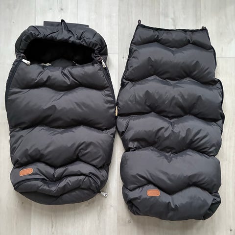 Voksin lämpimin untuvalämpöpussimalli. Tässä ei lapsi palellut kylmemmilläkään pakkasilla. Väri harmaa. Siisti ja puhdas kunto lukuunottamatta pitkän päällysosan alakulmassa olevaa pientä reikää, joka tuli pyöräkärrykäytössä. Reikä on paikattu Voksin omalla paikalla, katso kuvat (huomioitu hinnassa). Sopii käytettäväksi vastasyntyneestä noin 4 vuoden ikään saakka. Ei ole käytetty ulkokenkien kanssa. Selkäosa villaa. Kansiosat 80 % untuvaa ja 20 % höyhentä.