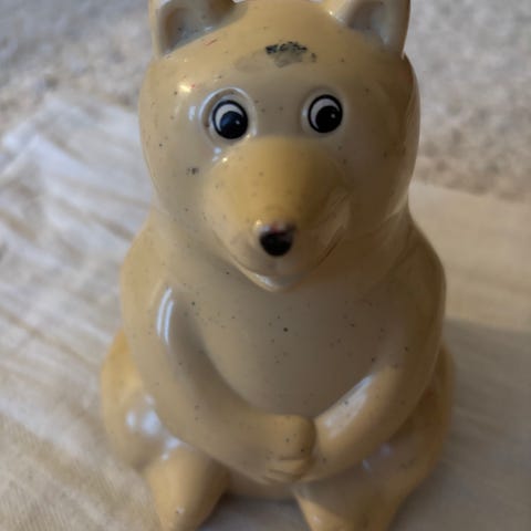 90-luvulta oleva Merita pankin säästölipas, jääkarhu kaulaliinalla.