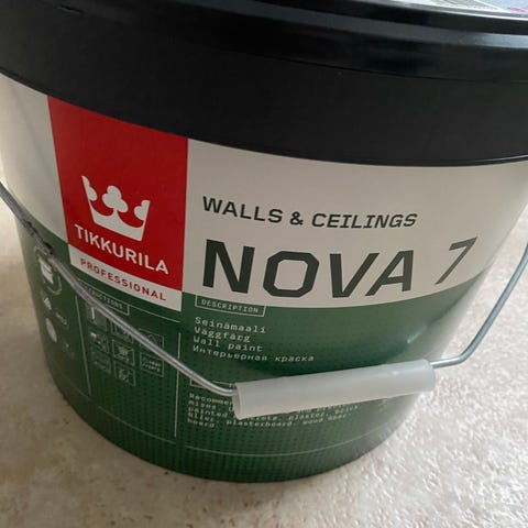 Ylimääräiseksi jäänyt avaamaton 9 litran maalipönttö erittäin laadukasta Tikkurilan Nova 7 maalia nopeimmalle. Liuotteeton, Joutsen-merkitty M1-luokan maali sisäkattoihin ja -seiniin.