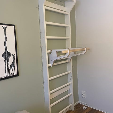 Ylin puola ulokkeella mikä sopii vaikka voimistelurenkaille tai leuanvetoon.