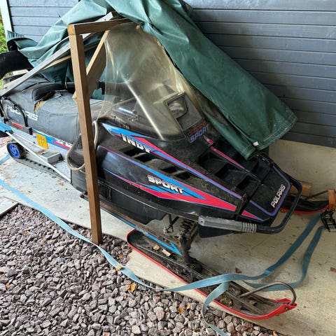 Retrokelkka, Ockelbo Trioman 20 P, 2-telainen yksi suksi. Kelkalla ei ole ajettu 8 vuoteen.