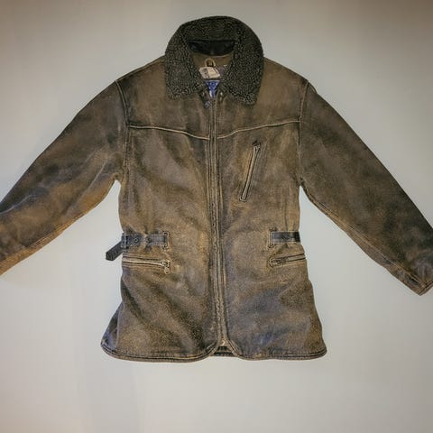 Karvavuorinen nahkatakki (shearling-tyyppinen).